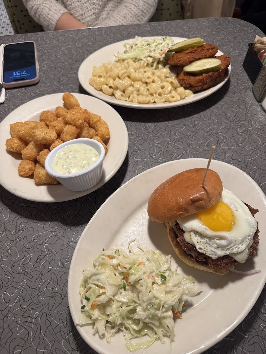 Super incredible vegan/vegetarian diner! I'm vegan and this is definitely a new go to spot for me in Cambridge. I came here with a friend around 5pm on a Saturday night, and we were able to get seats at the counter immediately. All the staff and waiters were super welcoming and friendly. The interior is clean and inviting, and the whole place gives off Pizza Planet from Toy Story vibes. I had the vegan reuben, which was absolutely delicious. I tried the cheese and seitan beef separately and individually they were honestly a little odd, but the sandwich altogether was amazing. The slaw on the side was nice and tangy as well. Prices are not too high for the amount of food. Highly recommend!